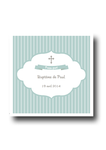 Créez en quelques minutes seulement tous vos faire-parts de baptême. Personnalisez ce modèle avec vos textes. Notre logiciel en ligne génèrera automatiquement un fichier PDF format A4 avec 1 faire-part. Il ne vous restera plus qu'à imprimer vos faire-parts, les découper et les plier. Notre prix est unique : une fois votre produit acheté, vous pouvez imprimer chez vous autant d'exemplaires que vous le souhaitez !