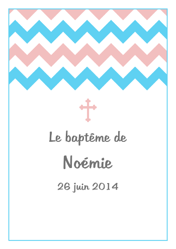 Ce livret de messe baptême est joliment illustré par un motif chevron.Créez en quelques minutes seulement tous vos livrets de baptême. Personnalisez ce modèle avec vos textes. Notre logiciel en ligne génèrera automatiquement un fichier PDF format A4 avec 1 livret. Il ne vous restera plus qu'à imprimer vos livrets et à les plier. Notre prix est unique : une fois votre produit acheté, vous pouvez imprimer chez vous autant d'exemplaires que vous le souhaitez !