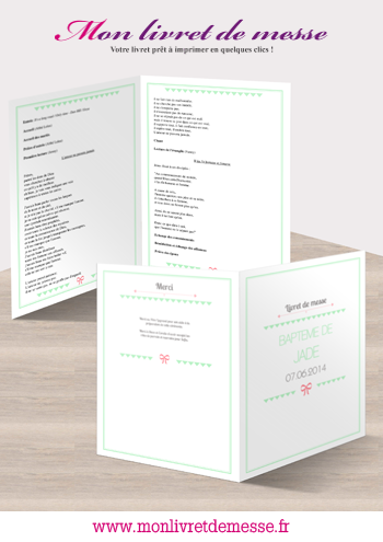 Créez en quelques minutes seulement tous vos livrets de baptême. Personnalisez ce modèle avec vos textes. Notre logiciel en ligne génèrera automatiquement un fichier PDF format A4 avec 1 livret. Il ne vous restera plus qu'à imprimer vos livrets et à les plier. Notre prix est unique : une fois votre produit acheté, vous pouvez imprimer chez vous autant d'exemplaires que vous le souhaitez !