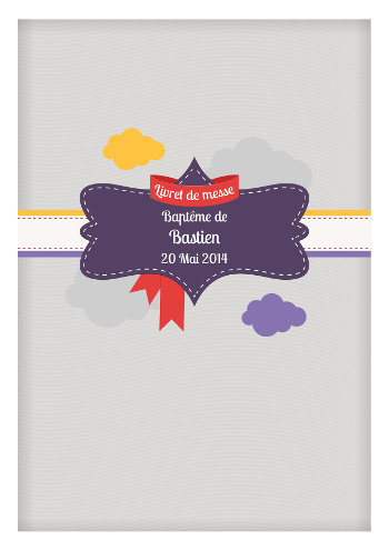 Ce livret de baptême est joliment illustré avec des nuages, une étiquette bleue et un ruban rouge.Créez en quelques minutes seulement tous vos livrets de baptême. Personnalisez ce modèle avec vos textes. Notre logiciel en ligne génèrera automatiquement un fichier PDF format A4 avec 1 livret. Il ne vous restera plus qu'à imprimer vos livrets et à les plier. Notre prix est unique : une fois votre produit acheté, vous pouvez imprimer chez vous autant d'exemplaires que vous le souhaitez !