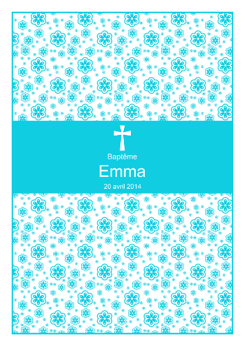 Ce livret de messe de baptême est décoré avec un joli motif floral.Créez en quelques minutes seulement tous vos livrets de baptême. Personnalisez ce modèle avec vos textes. Notre logiciel en ligne génèrera automatiquement un fichier PDF format A4 avec 1 livret. Il ne vous restera plus qu'à imprimer vos livrets et à les plier. Notre prix est unique : une fois votre produit acheté, vous pouvez imprimer chez vous autant d'exemplaires que vous le souhaitez !