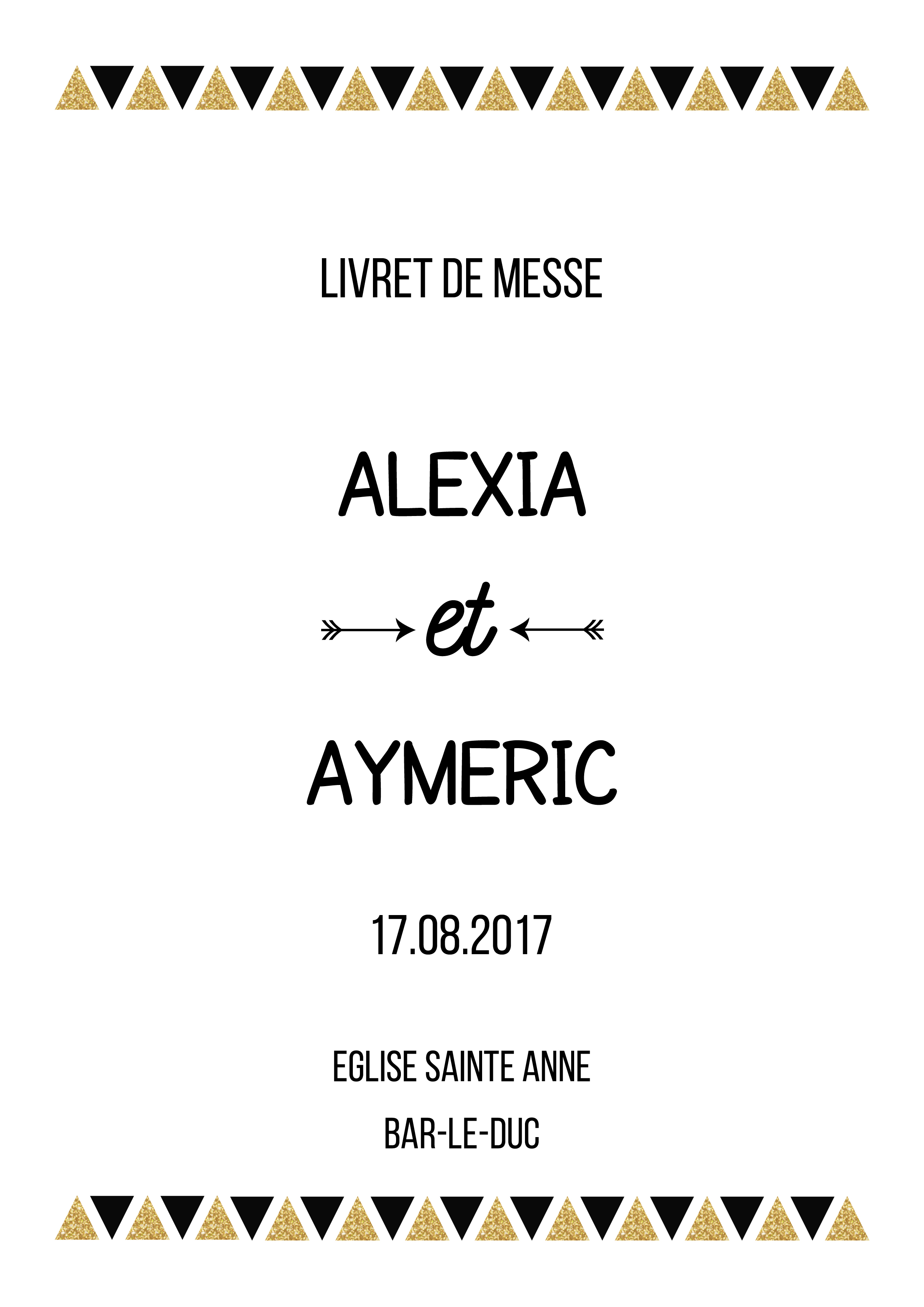 Ce livret de messe ou de cérémonie est idéal pour un mariage moderne avec un style épuré. Une touche de doré pailletté rehausse le tout et donne un côté festif à l'évènement.