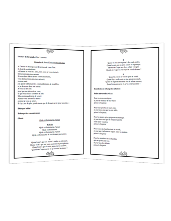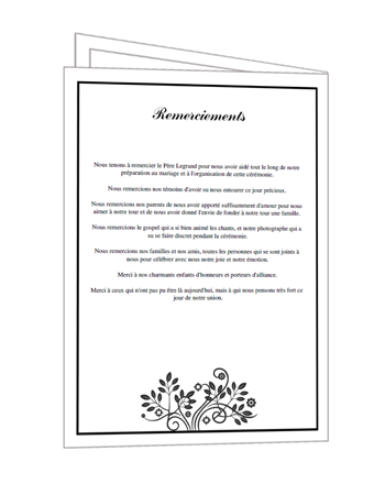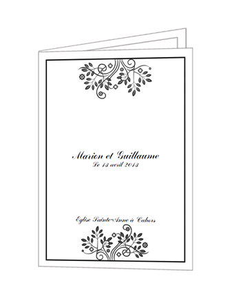 Ce livret de messe convient parfaitement pour un mariage au thème classique et raffiné. Il existe en noir et blanc ou en bordeaux.