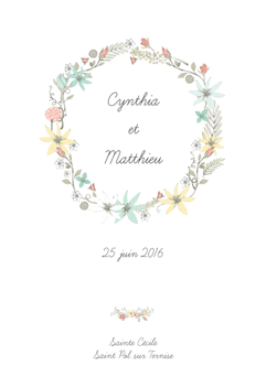 Ce livret de messe ou livret de cérémonie est composé d'une couronne de fleurs.
