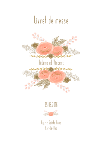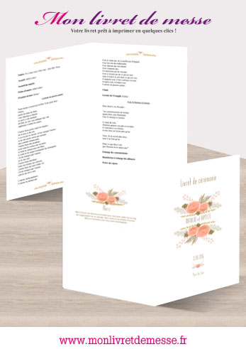 Ce livret de messe ou livret de cérémonie est composé de bouquets de fleurs et de branches dorées avec des paillettes.