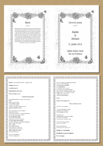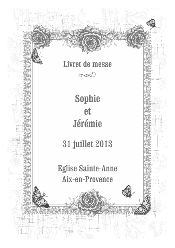 Ce livret messe vous est proposé en noir et blanc. Il peut-être imprimé sur du papier de couleur pour un joli rendu. Créez en quelques minutes seulement tous vos livrets de messe mariage. Personnalisez ce modèle avec vos textes. Notre logiciel en ligne génèrera automatiquement un fichier PDF format A4 avec 1 livret. Il ne vous restera plus qu'à imprimer vos livrets et à les plier. Notre prix est unique : une fois votre produit acheté, vous pouvez imprimer chez vous autant d'exemplaires que vous le souhaitez !