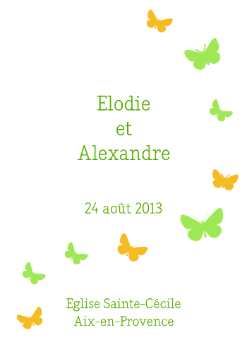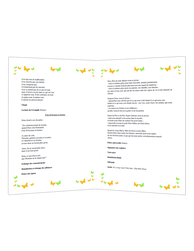 Ce livret de messe mariage vous propose une illustration sur le thème des papillons.